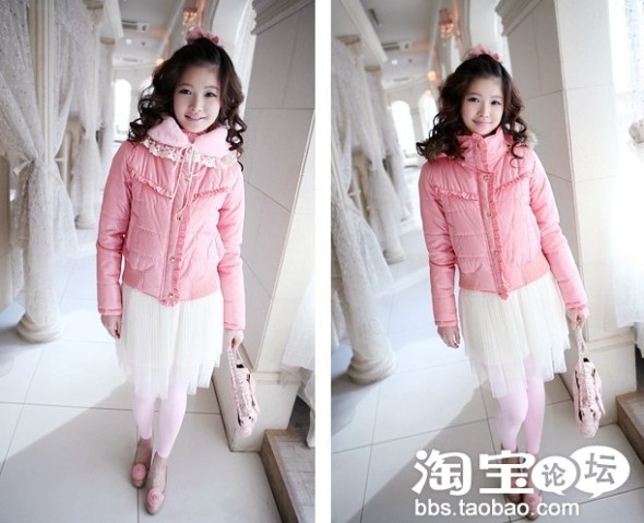 棉衣的锁花边设计,让平凡的棉衣更具可爱风范~~