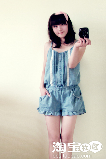 ★9.粉粉蝴蝶结+牛仔连体短裤