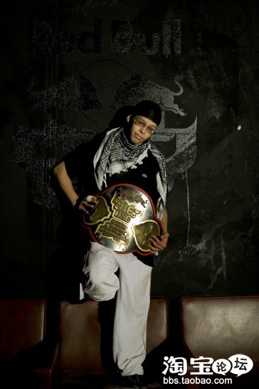 这位就是大名鼎鼎的法国bboy---lilou,他是breaking中的神话,lilou喜欢围脖,在我的印象里,几乎每次比赛围脖是他的最爱,也正是佩戴了这条围脖,另hip-hop风格的他显出一丝温文尔雅,创出了嘻哈风的新元素。不过,还是他手中的那个红牛杯冠军腰牌让人心动啊