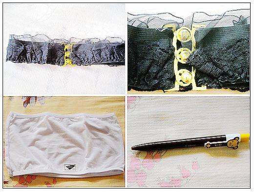 腰带是带黑色蕾丝花边的,很漂亮。另外还有一件白色的胸衣。质量确实都不错的。
