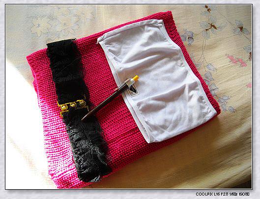 下面来秀秀我的奖品,围脖+腰带+胸衣+圆珠笔!上全家福啦!