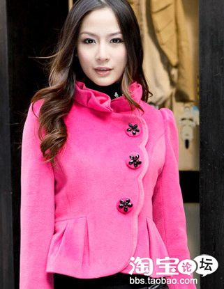 荷叶边修身呢绒大衣,淡雅淑女风的一款,甜美的气质,荷叶边的装饰,尽显小女人姿态,搭件打底裤,在不经意间打造清雅丽人气质。