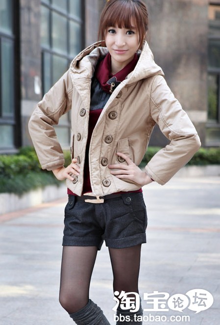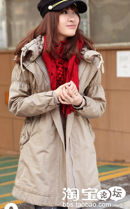 再来一款长的吧,冬季必不可少的长款棉衣,偶最喜欢啦,因为可以遮住偶有点大的PP,穿上是不是也另有一番味道呢?多了一些成熟多了一些洒脱,都说女人是善变的,可偶觉得形象多变更对些呢!