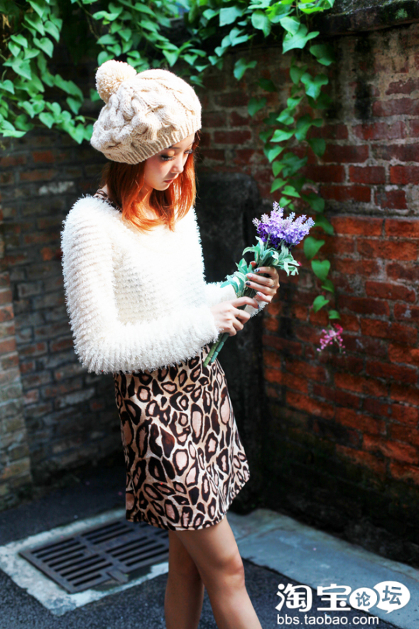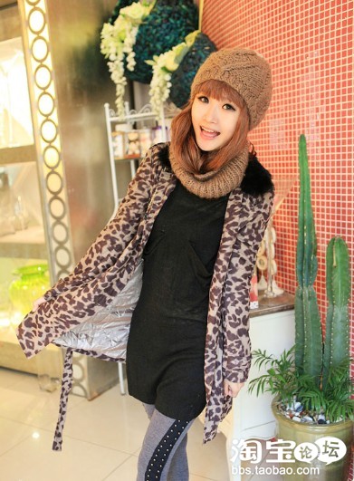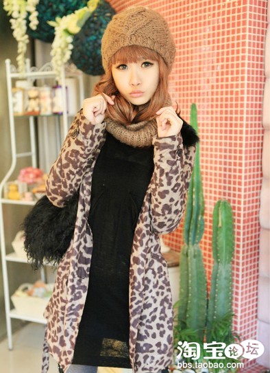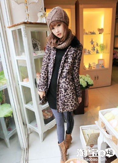 豹纹的风衣也很拉风呀~哈哈~毛线帽是冬天必备的~