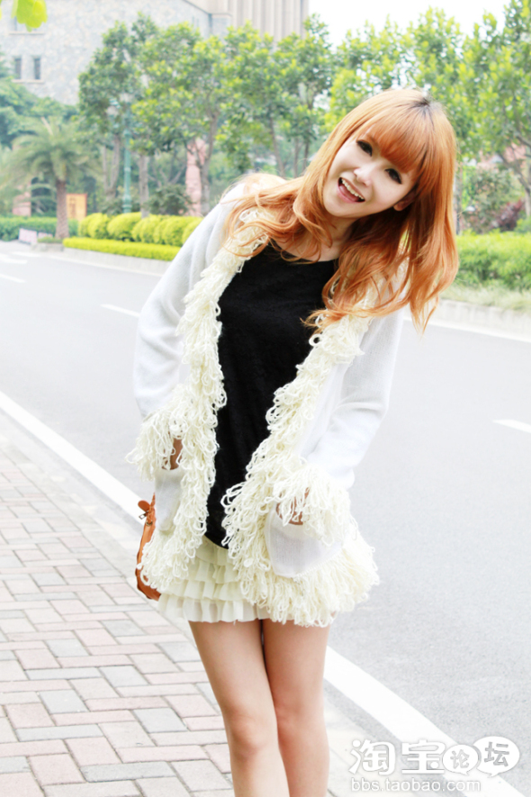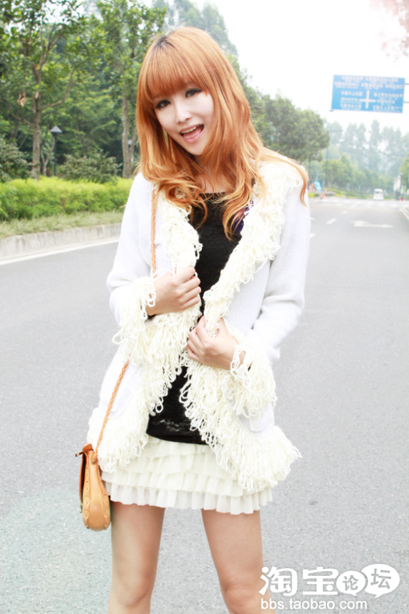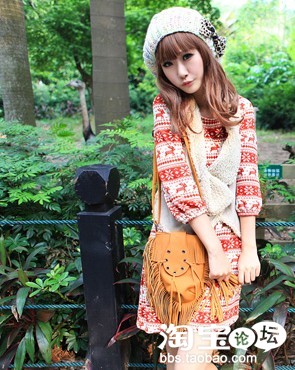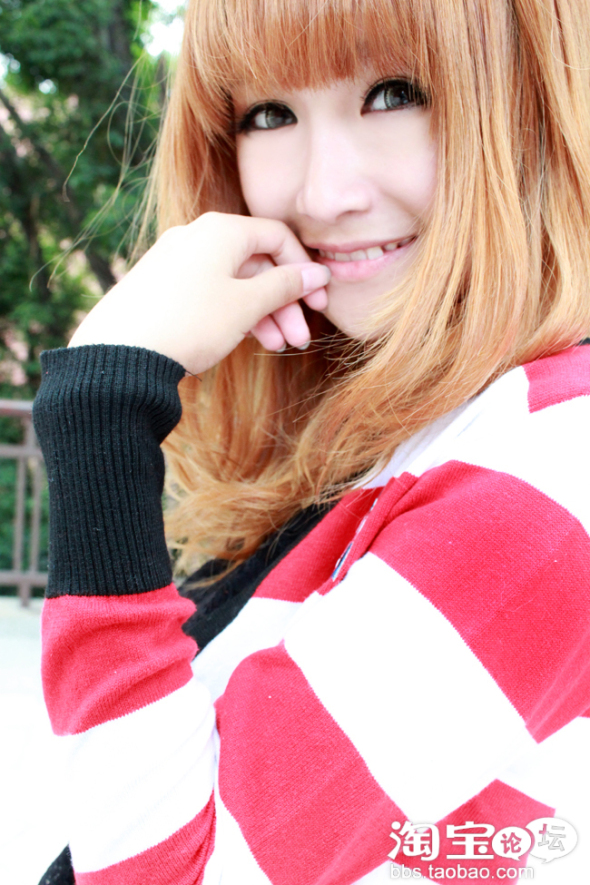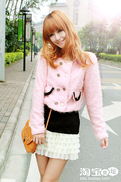 红色的毛毛衣就有点偏成熟啦~嘻嘻~
