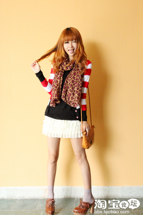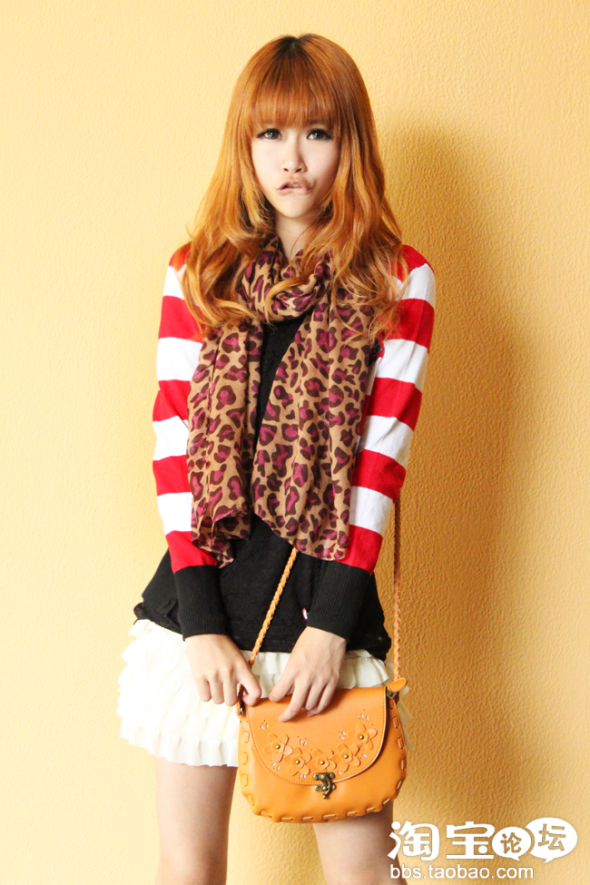 豹纹的围巾就是这一身的亮点哦~嘿嘿~豹纹流行中。。。。。