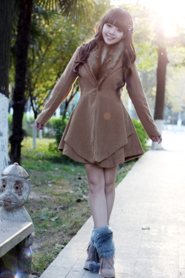 搭配:毛领可拆卸收腰裙摆外套+灰色毛毛脚套+蝴蝶结发夹+长头发嘻嘻 小米是短发哦这个是假哒