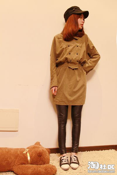 欧美的Feel~戴上帽子会比较像大明星吗?连衣裙是自己喜欢样子,像风衣一样的款式,很特别拉~