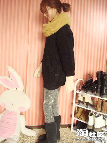 1。谁说毛衣一定穿的休闲,M搭配了大围脖,感觉就时尚了许多拉。话说今天流行的围脖真的叫一个百搭单品啊~搭配什么都很好穿的说,而且戴上效果超级好的,建议MM要买的话,买那种大些的,效果会更好。下面是雪花裤,还有雪地靴。雪地靴真是温暖拉~一下买了2双,妈妈说穿着像阿童木。(嘿嘿~)