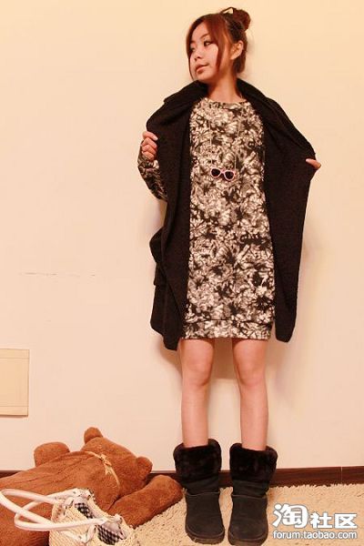3。复古的感觉。冬天也要穿美美的连衣裙,这样的花朵裙子感觉穿上就心情超好的,喜庆嘛。还有那搭配的皮质腰带,我也超喜欢,系成小蝴蝶结,可爱感~对了!是不是有点赫本的味道呢?(嘿嘿~原谅我的大言不惭)