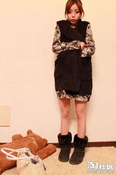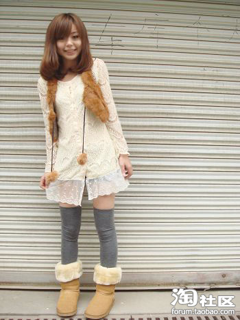 可爱的蕾丝衫+毛毛小马甲+雪地靴=日系小可爱 (