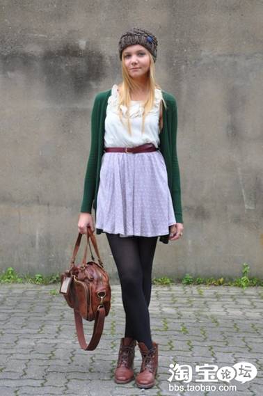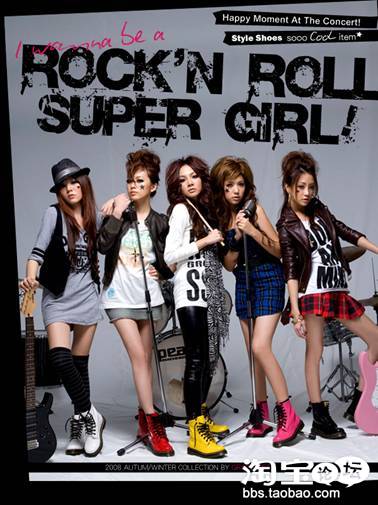 中长丝袜搭配马丁靴,早期的男性朋克族喜欢穿黑色的紧身裤和马丁博士靴,而女性们则喜欢穿廉价的网纹长筒丝袜和超短裙,现在的潮流则是很好地把这两者结合在了一起,而且色彩变得更加丰富和更加阳光。彩色的条纹长筒袜、印花的连袜裤、破碎的网纹丝袜都是现代朋克族少女们的最爱。