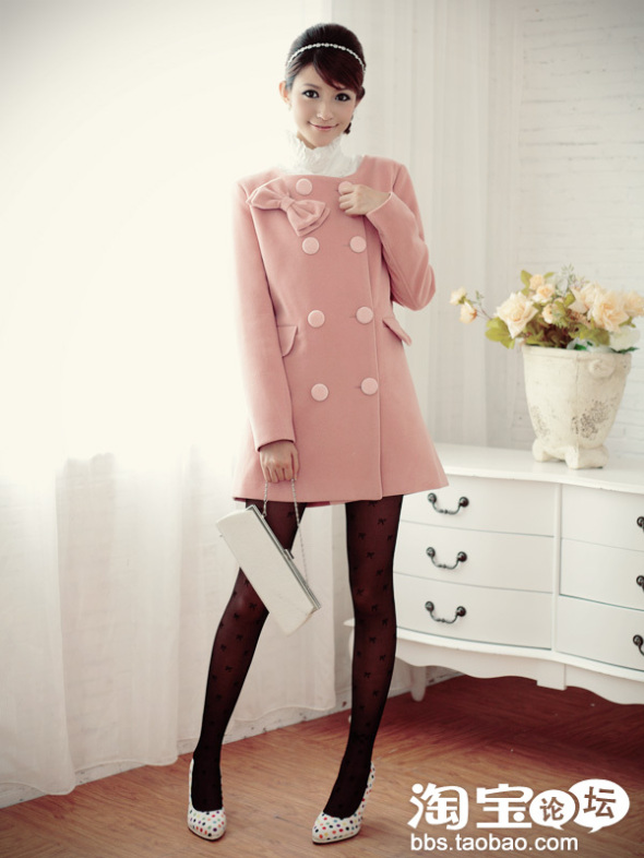 淡淡粉色的毛呢大衣就已经显得很淑女了