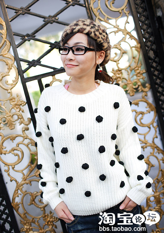 时尚圆点图案蝙蝠收口袖毛衫 这款兔毛的毛衣