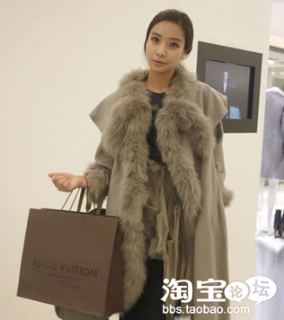 灰色大领呢子款外套可爱的毛毛下摆和毛毛领子华贵中时尚气势百分百,让你低调中奢华绽放!