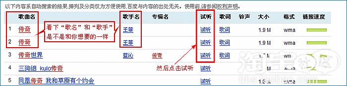 2.点击百度一下,搜索到例表,选择容量大小,然后点击试听!没有试听的就不要考滤了。