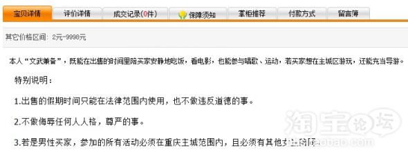 3.若是男性买家,参加的所有活动必须在重庆主城范围内,且必须有其他女生陪同。