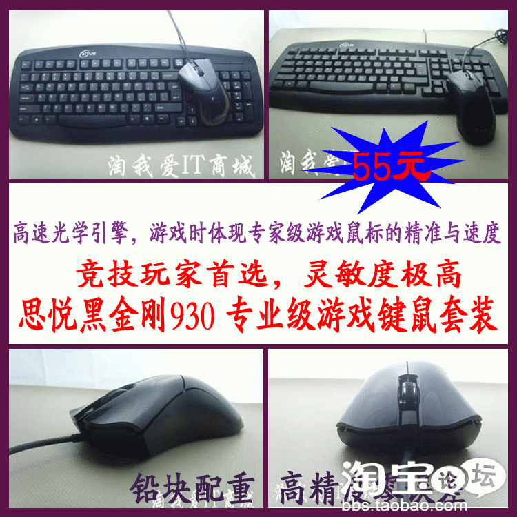 思悦黑金刚930有线游戏套装高速光学引擎,游戏时体现专家级游戏鼠标的精准与速度;人工学设计防滑设计,表面精致的颗粒漆工艺处理,外部配合手部曲线,操作倍感舒适轻松;采用500万次的轻触开关,按键使用寿命长;人体工学设计,握感更舒适;键盘鼠标内加配重块,游戏时不会感到“飘”高强度漆包软件此宝贝连接地址:http://item.taobao.com/item.htm?id=7032055601 直接复制连接即可更多宝贝详情请进:http://dongzhi123.taobao.com