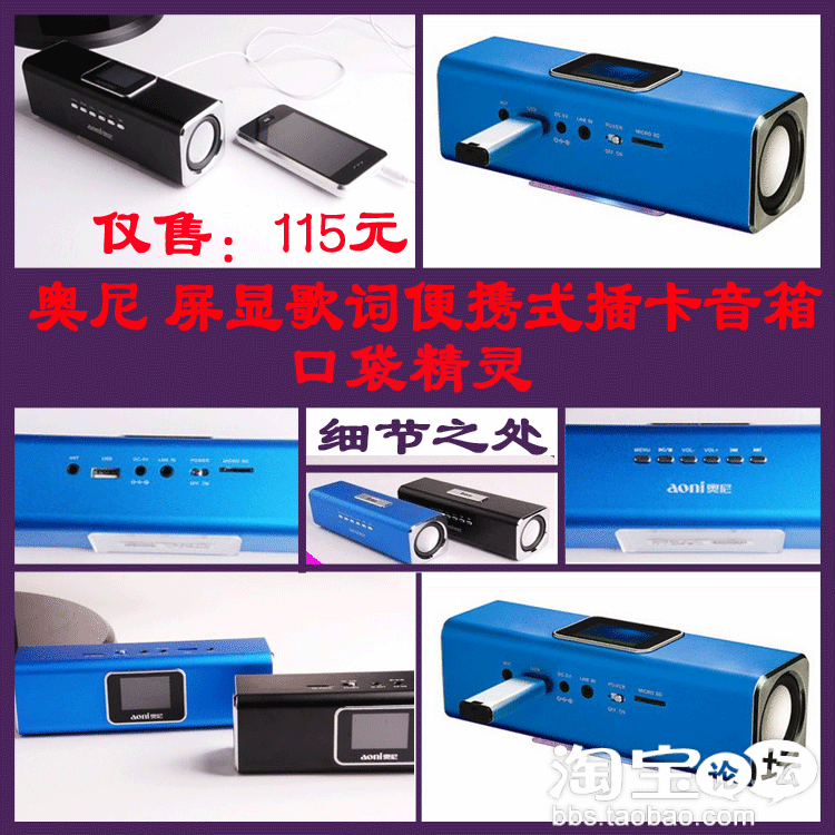奥尼年度力作 口袋精灵D503便携式屏显式插卡音箱
