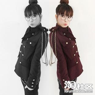 12号店铺专门为您特别定制的 最高版本妮子外套。深酒红色,复古休闲风格尽显女孩的天真与稚气,肩上还有一可拆卸的侧链条,挺有个性的哦。衣服的装饰很Q版,是不是有点像樱桃小丸子的装束呢,呵呵。喜欢可爱淘气的女性朋友都来看看吧,很不错的衣服哦。