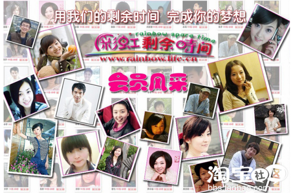 彩虹剩余时间宗旨:用我们的剩余时间,帮助更多的人完成梦想,插上希望的翅膀;用我们的微薄之力,帮助真正需要帮助的人,收获爱心的关怀!截止至2010年5月1日,“彩虹剩余时间”已经拥有彩虹会员九十六位、专家会员4位、专业团队1个,我们的会员分布在4个直辖市以及18个省的41座城市(境外还有墨尔本市)。参与我们和我们一起建设属于自己的彩虹家园吧。彩虹走过的每一步都闪着五彩的光芒。为了帮助更多的人,现在的彩虹依然在正在储蓄着更多的优秀力量。彩虹将通过淘宝网的平台,构建会员与买家友好互帮互助的桥梁。彩虹需要大家的支持和关注,才能继续熠熠生辉。