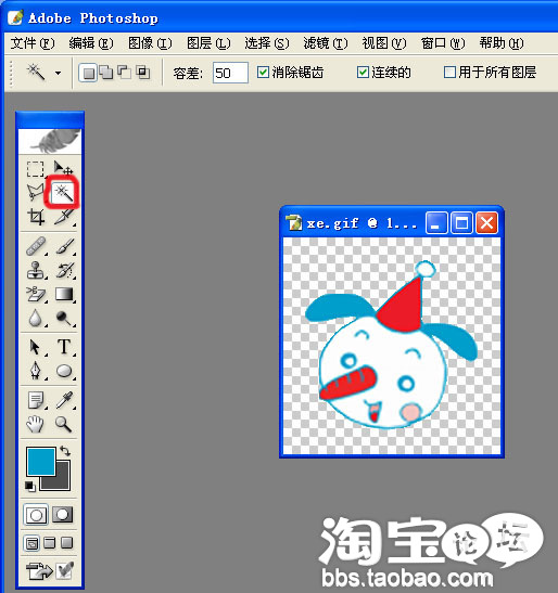 第二步:选取PS工具栏中的“魔棒工具”(上图中的红圈所示),在打开的图片空白处点一下,然后“右击”,在弹出的菜单中选择“选择反选”如下图所示:
