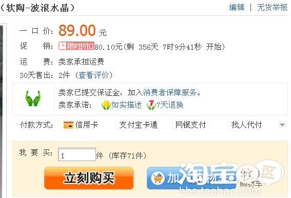 昨天有个客户找我买宝贝,说按限时折扣价给他,可我的宝贝没有折扣啊,感到很郁闷,今天研究了一下,原来是这样的:如果之前卖家做过限时折扣销售的宝贝,如果买方的电脑时间的年份小于2010年,则买方的机器就会显示折扣,月份我没有测试,只测试了把电脑时间的年份改位2009年,2008年的情况,以图为证: