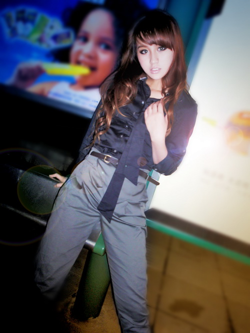独特的设计加上领带,搭配出小小的硬朗感觉