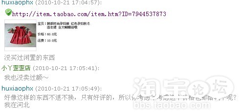 今天下班回家,还是以往的惯例,打开电脑,登录淘宝,居然发现有人加我好友时给我留言“秋冬红色孕妇裙多少长”,有点茫然了,糊里糊涂的,怎么回事额到底,添加好友成功后我才猛然想起前天晚上自己折腾的淘宝小店,该不会是有人看中了我店里的闲置了吧,我心里暗暗高兴起来........