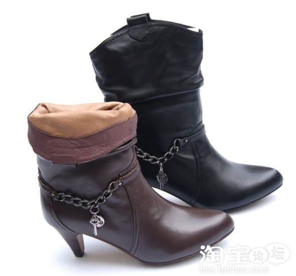 质量保证~2010秋款 百丽3ND65 牛皮中筒流苏短靴!
