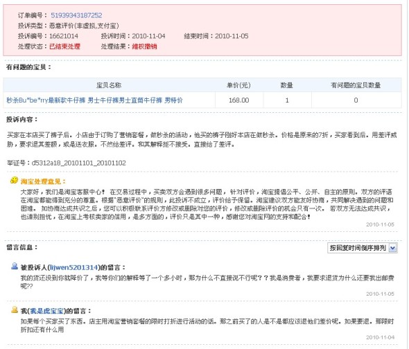 没想到我投诉失败了,我真不知道淘宝所谓的恶意中差评到底是怎么判定的。