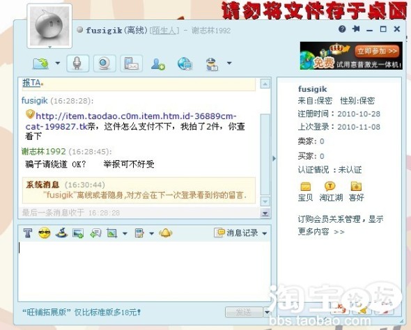 谢谢各位的支持! 还望来我店里坐坐!!进来学习学习呵呵呵, 我也经常遇到, 但幸好之前知道些淘宝上骗子的事情,一般都会里的