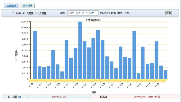 从 8月的每月销售额只有3万, 到9月份的10万, 到10月份的20万.