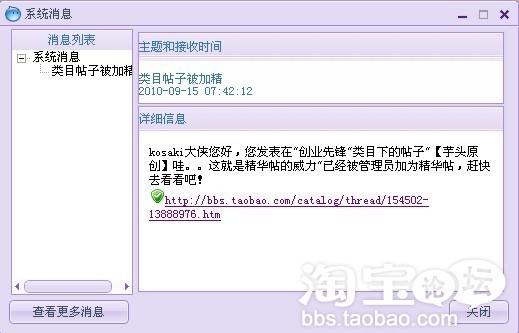 看到了吧,一篇的精华帖真的会给自己带来意想不到的惊喜!所以淘友亲们,不用再为了流量而烦恼了!只要你怀着写精华帖的心态,捉紧时间,马上开始打开文档,把自己的一路艰辛记录下来,把最真诚的一面跟大家分享吧。。相信你将会收到意外惊喜的!!