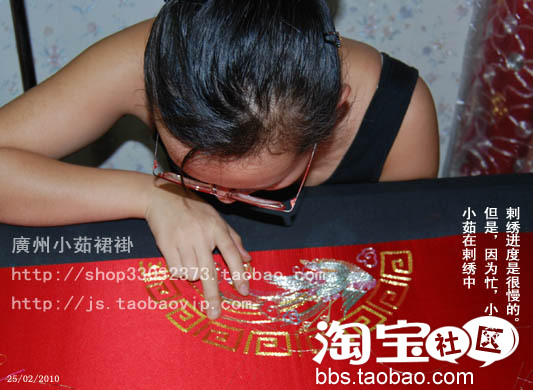 今天,小茹传承了这份文化,传承了母亲们的这份心意,用心剌绣!力求把最传统的广东龙凤裙褂+时尚剪裁,制作出时下最受欢迎的港式金银线手绣婚庆服饰!