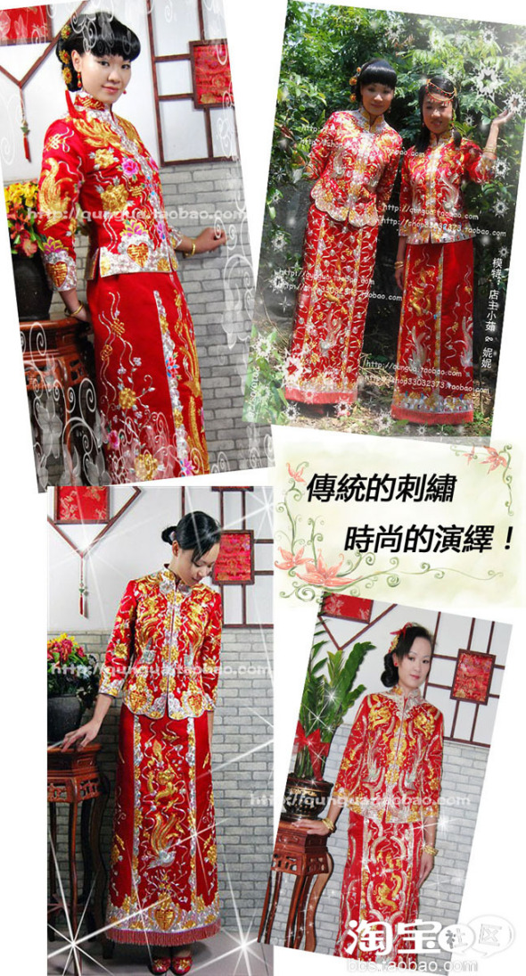 店铺名:小茹婚纱服饰设计工作室/JeaniaStudio店铺网址:http://qungua.taobao.com/店主旺旺ID:jeania_tang请一句话总结描述本店铺的特色:传统的金银线手绣裙褂,时尚的中式婚庆演绎!店铺特色展现: