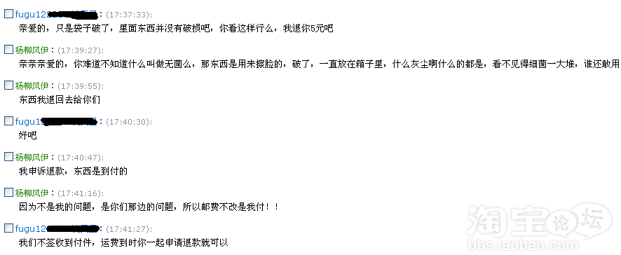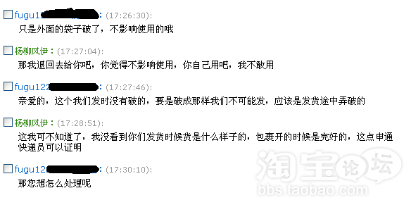 看到他那样的态度,我觉得我该把东西退回去,本来就承诺7天内无条件退换货,更何况还是商品存在的问题呢,还想诱导我跟他讨价还价,我又不是想要他那几块钱,我至于那样做么,我想很多买家吃亏就吃在这个时候和卖家讲价,我坚决不要,我就要退货,东西有问题,我为什么不能退货。