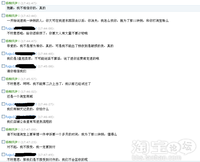 各位朋友,当我们收到的商品出现了问题,首先一定不要慌,特别是买贵重物品的时候,我们应该先仔细想想,应该怎么去和卖家协商处理,不要看到卖家说不退不换,签收了就不负责任的话,被气昏了,辱骂卖家,这样即使是你有理,也变成是你没理,到时旺旺截图申诉,你说过的话都存在记录,吃亏的是自己。其实我前面我也气晕了,不过我克制住自己,很和气和客服周旋,让他没理由控诉我什么,一步步把他逼着自动退款给我,虽然是十几块钱,但是假如我买的是上千上万的东西呢,那意义就不一样了。淘宝是一个讲道理的地方,只要申诉上传的证据确凿,淘宝是不会维护卖家的。