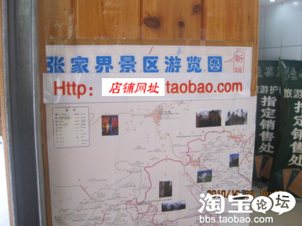 下面这张照片拍摄于宝峰湖风景区的一家店面。这是店面中间的一根立柱。贴的地图是营业员为了省气力,方便客人查询又拉路线的,而我在这贴的这张写真条。是为了给客人视觉上的冲击。