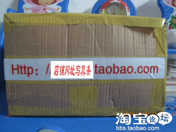 这是我包裹箱外观,四周一样有这写真条。我的想法是:在包裹快递过程中,达到最大的受众,所以,一个箱子都贴的有四条。(因为自己暂时只有五星,还没有达到印制店铺专用箱的时候,我想,随着自己店铺信誉度的提升,一定会有自己的店铺专用箱,估计也要到三钻的样子啦!才可以维持这种成本)是无论你快递员以何种方式拧着我们包裹箱,都能从不同角度看见我店铺的网址。这种可能是我们的一厢情愿罢了。