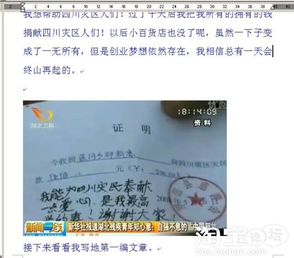 我所有的拥有的钱捐献四川灾区人们!以后小百货店也没了呢,