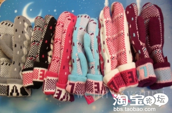 【宝贝名称】:可爱雪人手套 保暖手套 毛绒手套 加厚手套 连指手套【宝贝货号】:雪人【宝贝颜色】:灰色 黑色 粉色 天蓝色 白色 紫色【宝贝尺码】:均码【宝贝成份】:纯毛线 针织【宝贝价格】:¥ 15【宝贝特点】:韩版 经典毛线保暖加厚双层连指手套 毛线手套秋冬必备款,时尚经典永不过时的花色图案,相信很多MM都喜欢的款式,多色可选,亲可以选择自己喜欢的颜色,超值实惠,快下手吧,还等什么?