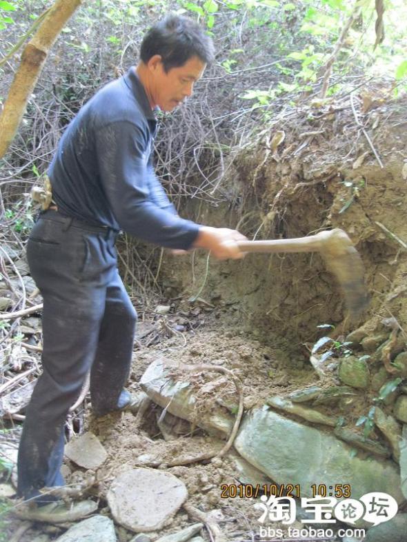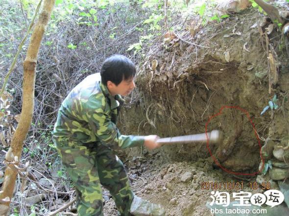 接下来我也动手了,葛根经过十几年的生长,已经长得很深了!我们和老爸得轮番上阵才行。