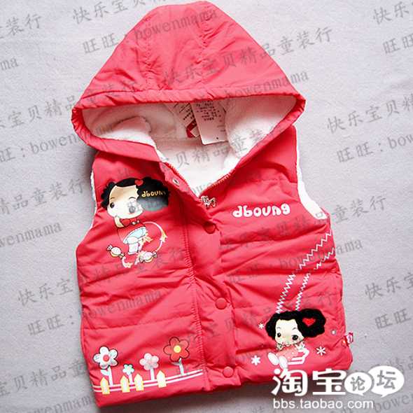 这款马夹暖暖的,孩子出门穿在外面,或是回家后只穿毛衣套在外面都可以哦.还是迷糊娃娃的。里边是羊羔绒的,正品,带吊牌的. http://item.taobao.com/item.htm?id=8006785502