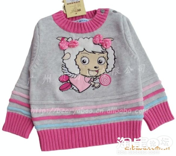 第二款还是贝蕾地的,是问过邻居家漂亮的小MM后订下来的。那个六岁的小姑娘指着我看中的一堆毛衣,说最喜欢这一件。有美羊羊图片和蝴蝶结的。相信这个小姑娘一定代表了很多小女孩的爱好。 http://item.taobao.com/item.htm?id=7996953476
