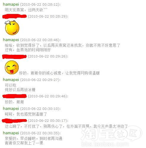 客户是很好的客户,终于在聊了近一个小时之后,她能够理解我的心情,能听的进我说话了。以真心换真心,她体恤到我的不容易帮我改了好评,但我心里清楚,在她正确再操作一次成功之前,她还是会有疑虑的。所以即便在客户改了好评之后我依然还是会发燕窝给她,如果这次达到了她的预期,我相信她会成为我的长期客户,这对我们来说,又会有什么损失呢,还多了一个朋友。
