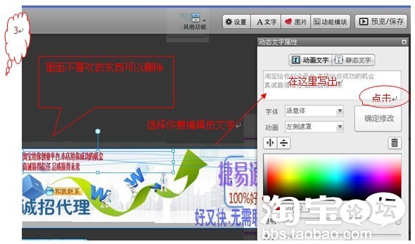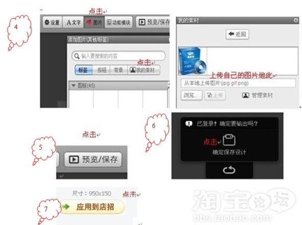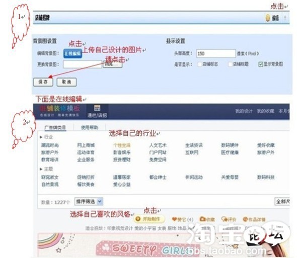 首先登录我的淘宝,点击店铺装修,进入装修页面,首先是店铺招牌,为了更容易看懂,请看载图: