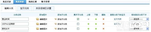 接下来是宝贝分类,如果你想把宝贝分类做漂亮一点的话,首先要准备好宝贝分类的图片素材,如果你电脑里有coreloraw12或adobephotos(ps)如果都没有,word2003也可以,自己设计,这样也会与众不同,图片设计好存在电脑里备用。然后登录我的淘宝,点击宝贝分类管理,编辑分类请看载图: