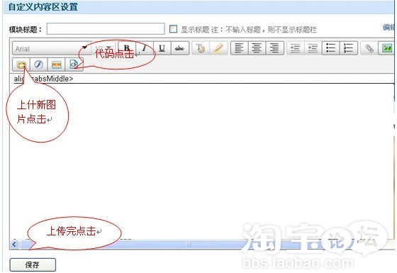 最后一个就是自定义内容区了。自定义内容区也是一样,如果你想做的深动,一目了然,首先也要下载图片,或自己设计图片,然后在word2003里把文字和图片排版,排好后,做成图片的格式保存。如果不图文混排,可以直接上传图片代码。然后编辑自定义内容区,请看载图: