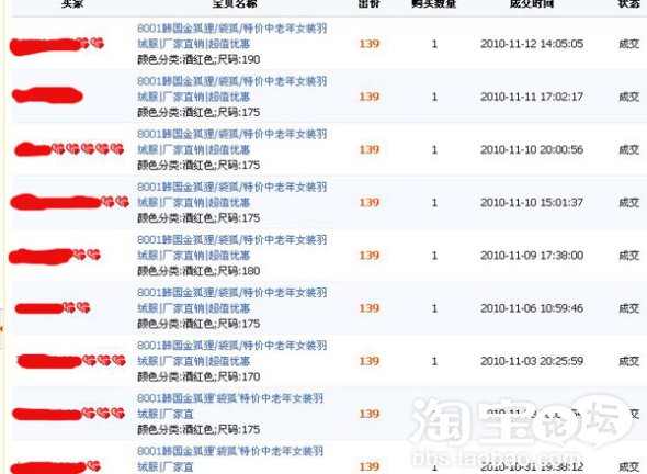 于是就想到了以前的推广方法,到一些论坛去发些帖子,比如:百度空间,新浪博客,西祠胡同等等,淘宝社区里面不能直接发广告的哦,呵呵,几天下来还真有效果,看看一件宝贝的购买记录吧: